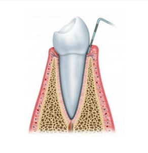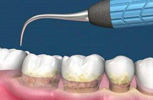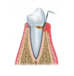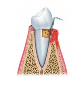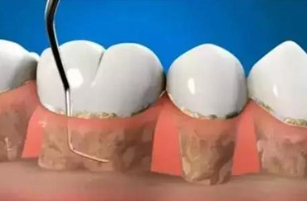 02:龈下刮治把牙龈下方的牙结石、龈下菌斑和牙周袋里的炎性肉芽组织清除